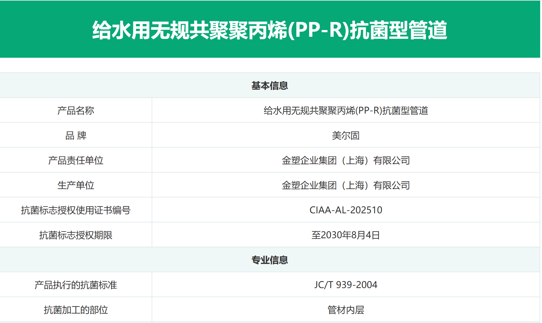 抗菌PP-R管性能引領(lǐng)業(yè)界追求,金塑企業(yè)集團(上海)有限公司獲得抗菌標志使用授權(quán)
